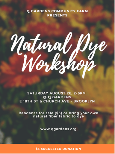 We’ll be dyeing with marigold from the garden, avocado pits and skins collected from the compost drop-offs, indigo, and some fresh garden greenery! Bandanas/handkerchiefs will be available to purchase (or subsidized) for those who would like to participate but don’t have anything to bring from home.