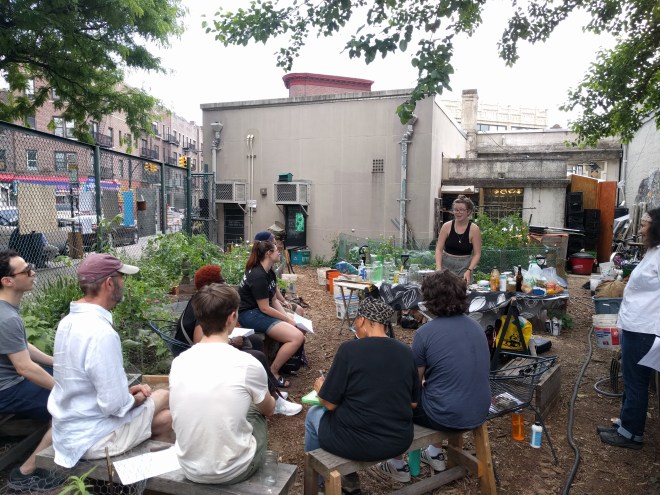 This past weekend, we gathered in the garden to learn from food educator and Q Gardens co-coordinator, Sarah Carlisle. We see a whole lot of food scraps come through the garden, many of which still have a lot to give! Sarah demoed how to use your everyday kitchen scraps to make vegetable stock, fresh sauces, and vinegars. All are great ways to get the most nutrition (and other benefits) from your produce, decrease your reliance on commercial/packaged products, and save money.